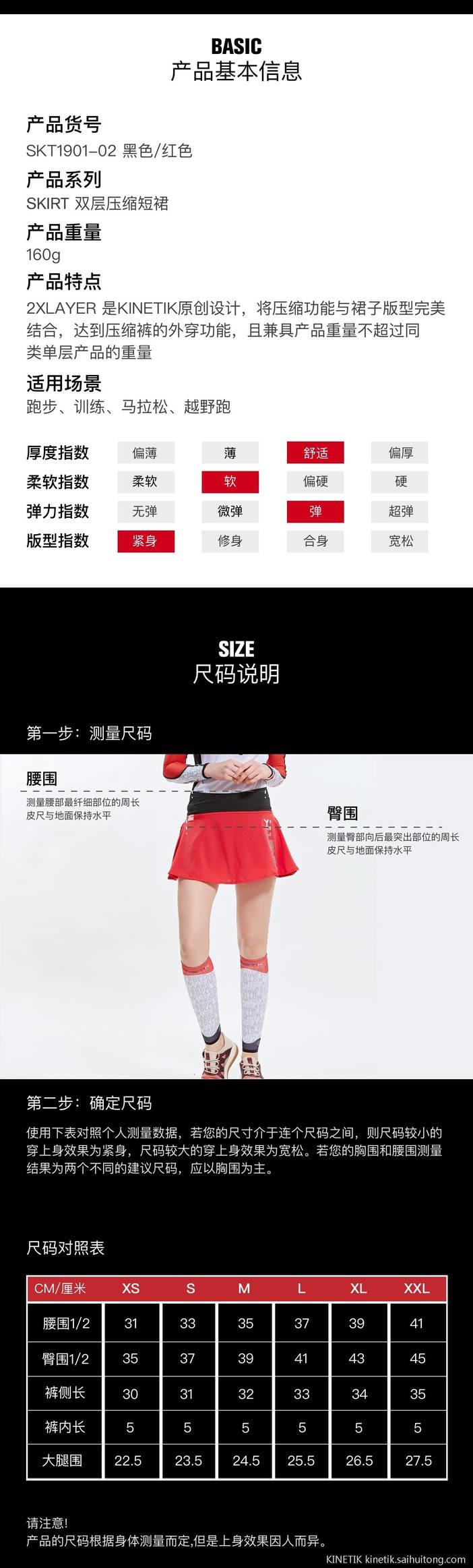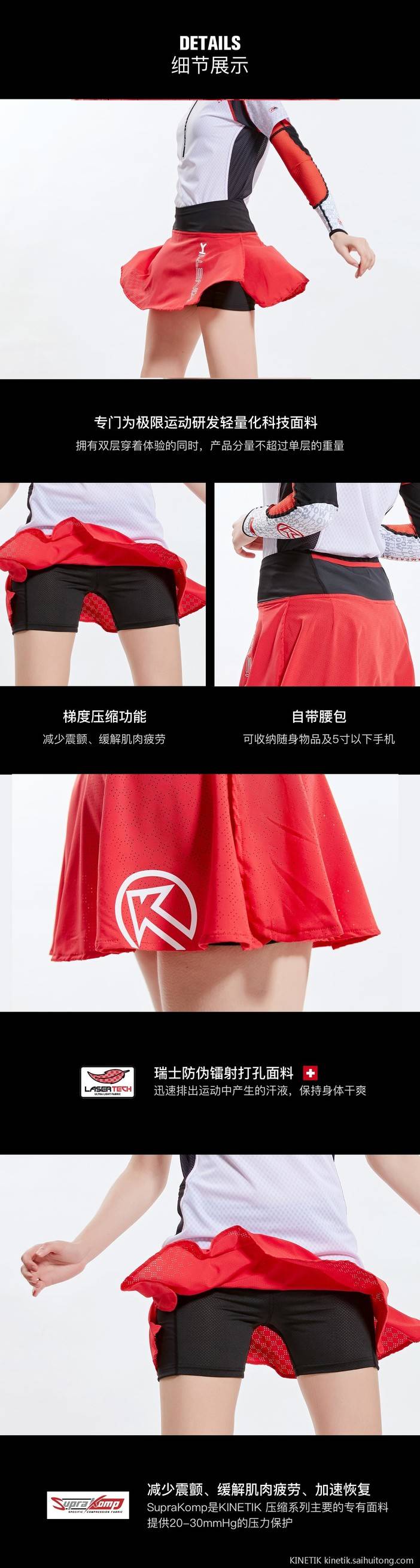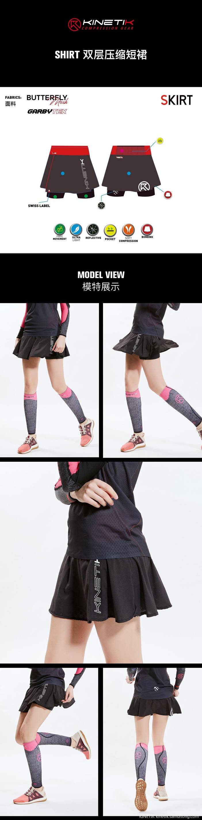 KINETIK SKIRT 经典双层压缩短裙 越野 跑步 训练 健身